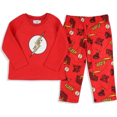 - CLASSIC CHARACTER DESIGN – This pajama set-top features a raglan long-sleeved style fit with the classic comic-style print of The Flash logo. The pants feature an all-over image of The Flash running with his lightning bolt and title logo next to him.