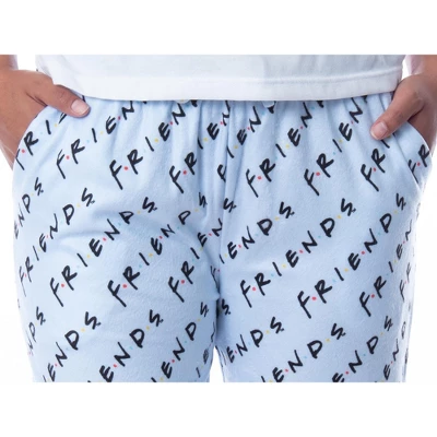 - LARGE CLASSIC LOGO DESIGN – Each of these Friends lounge pants features a fun diagonal print of the classic Friends logo against a soft blue background.