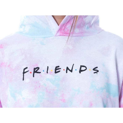 - SHORTENED HOODIE STYLE – This comfy soft jogger pajama set features the iconic FRIENDS logo on a rainbow tie-dye background. The pants also have an extra-long waist tie (so you won’t lose it in the wash). This hooded jogger PJ set is both comfortable and functional, it is made of a polyester-spandex blend that allows it to wear well but also be stretchy and comfortable. The top has a cropped hoodie look with an extra soft hood and the pants are joggers with two extra deep pockets hidden in the seam to carry your phone or keys. Any fan of FRIENDS will love relaxing in this fun set