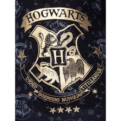 - WONDERFUL, LIGHTWEIGHT GOLD FOIL PRINT – This wonderful Harry Potter Nightgown features a large Hogwarts gold foil design on front with a wonderful all-over front pattern of Harry Potter related designs. The back and raglan sleeves have a solid black color.