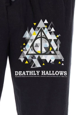 If youâre looking for licensed Harry Potter merchandise, youâve come to the right place! The Deathly Hallows are three potent magical objects supposedly created by Death and given to three brothers in the Peverell family. There is the Elder Wand, The Cloak of Invisibility, and the Resurrection Stone. These 3 objects are said to give you power over death! These Harry Potter lounge pants feature the Deathly Hallows symbol and script logo printed on the left pant leg. If your loved one enjoys Harry Potter, then they’ll be thrilled to wear these magnificent pajama pants as they lounge around the house watching a movie or reading a book! Made of 60% cotton / 40% polyester.