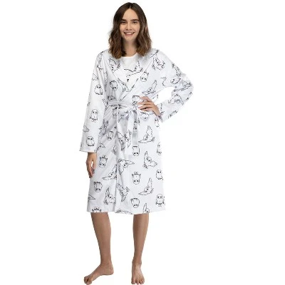This is an officially licensed Harry Potter robe, guaranteed!!! The Harry Potter books and films have become legendary among Potter fanatics and casual fans alike. Hogwarts Castle of Witchcraft and Wizardry with its 4 houses, Gryffindor, Slytherin, Ravenclaw, and Hufflepuff train the magic heroes of everyday life. Each student is given an Owl that acts as a mail service to them. Hedwig is Harrys beautiful white Snowy Owl that becomes a beloved character of the series. This Super-soft plush bathrobe is done with embroidered characteristics of Hedwig. It is made of a Minky plush 100% polyester fabric. For questions regarding sizing, please refer to size chart.