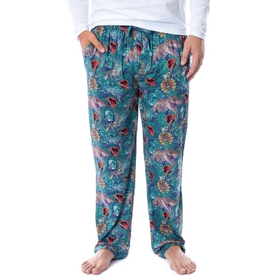 - CLASSIC DESIGN – These pajama pants showcase some of the notable dinosaurs featured in the classic film Jurassic Park such as a Tyrannosaurus Rex, Velociraptor, and many more! Behind all these beasts are flowers and other vegetation, as well as the classic movie logo for Jurassic Park. These pajama pants are perfect for lounging about and watching all your favorite Jurassic movies in the franchise!