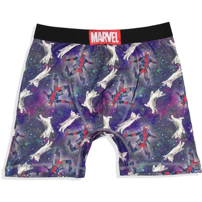 - CLASSIC CHARACTER DESIGN – These Marvel boxer briefs are a two-pack, the first featuring Deadpool and a flying cat with a galaxy print behind them. The second pair features Deadpool’s logo in an all-over print.