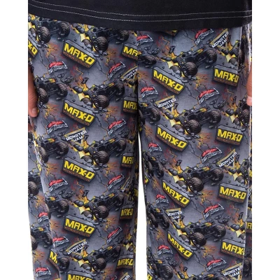 - ALLOVER PATTERN ON PANTS – The pants in this pajama set have an allover pattern of Monster Jam logo, and the monster truck MAX-D bursting forth through a rock wall with fire blazing behind it! It has an elastic stretch waistband for a comfortable fit. These are magnificent for indoor wear and even lounging around outdoor during the warmer months!