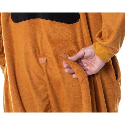 - CLASSIC CHARACTER DESIGN – This Scooby-Doo Kigurumi union suit features his spots on the back and arms, a button closure detachable hood with Scobby’s face embroidered on it, ears that stick up located on the hood, and it wouldn’t be complete without a detachable tail
