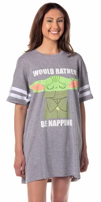 - CLASSIC DESIGN – This Star Wars The Mandalorian soft and comfortable pajama dress features Grogu/The Child (also known as Baby Yoda) with the words “Rather Be Napping” all around. It’s perfect for everyday wear!